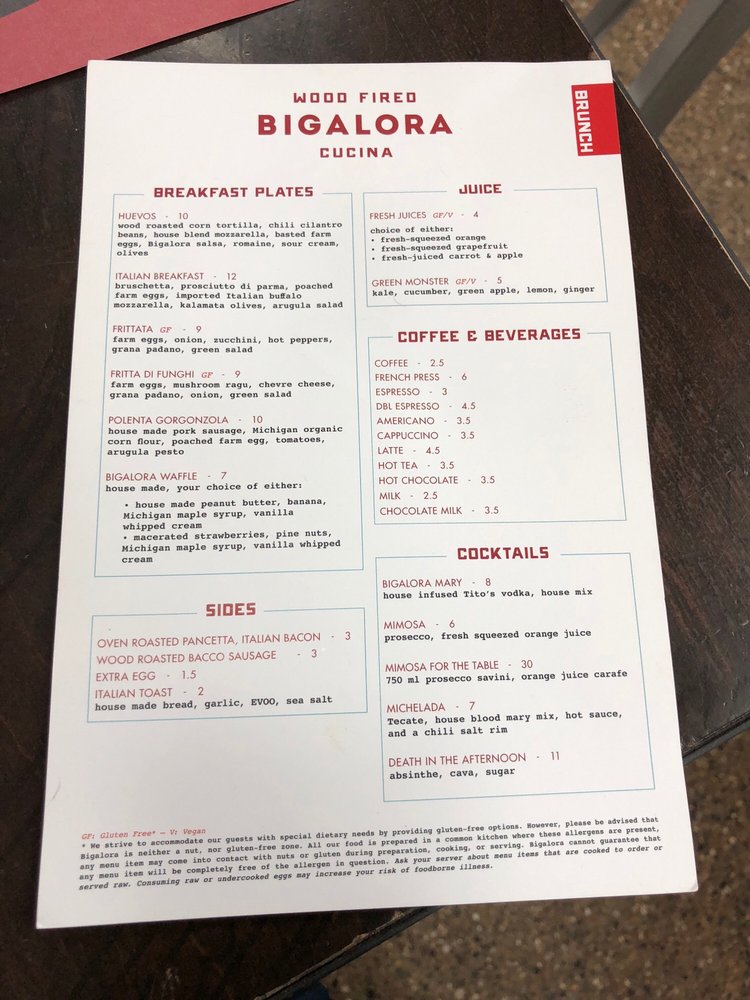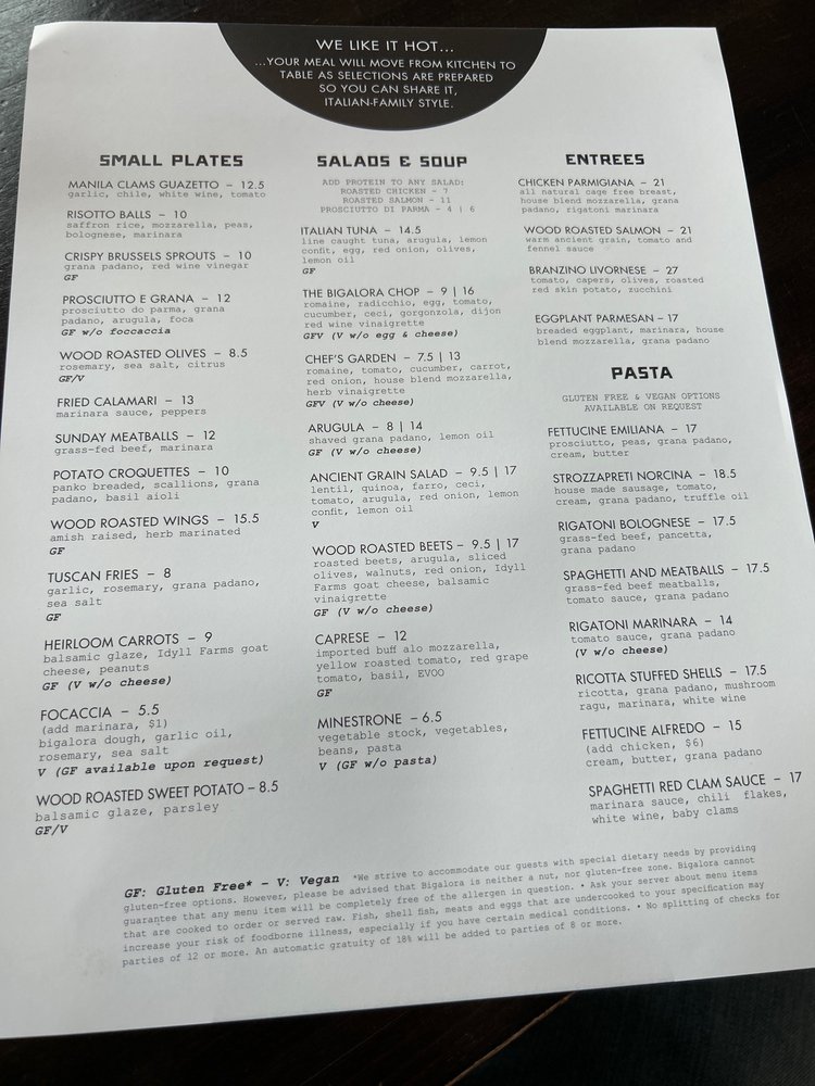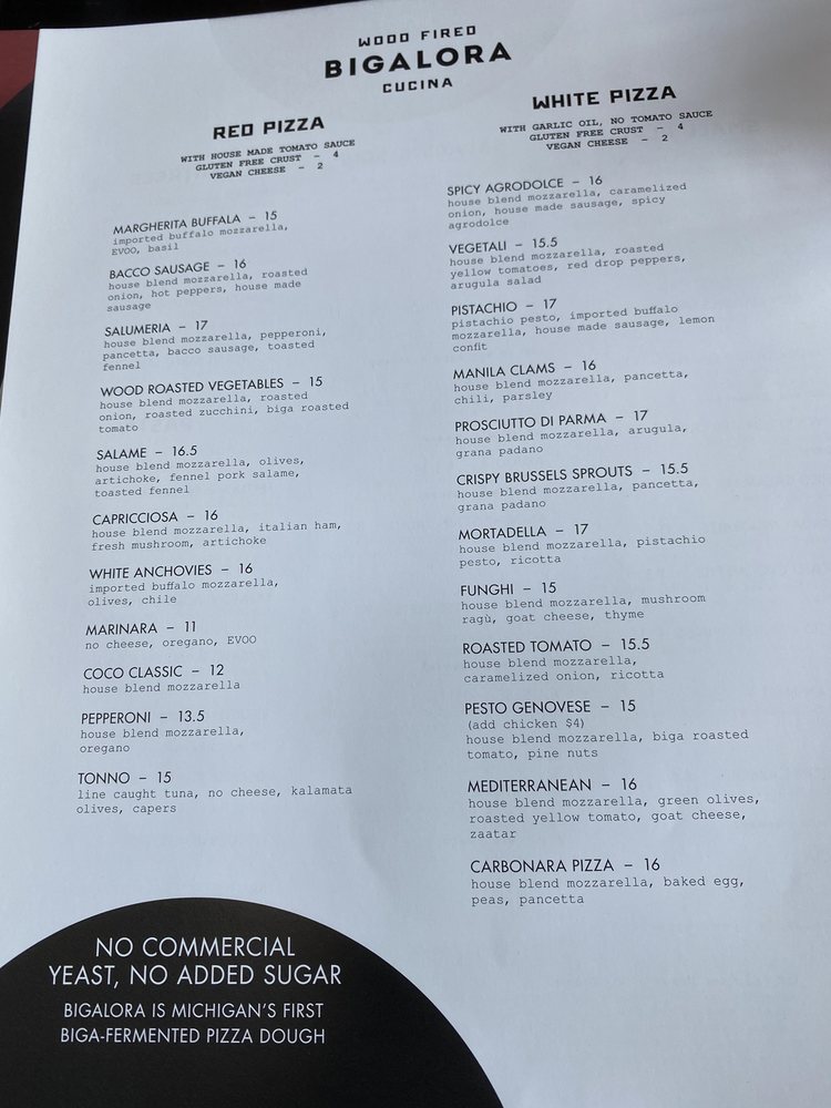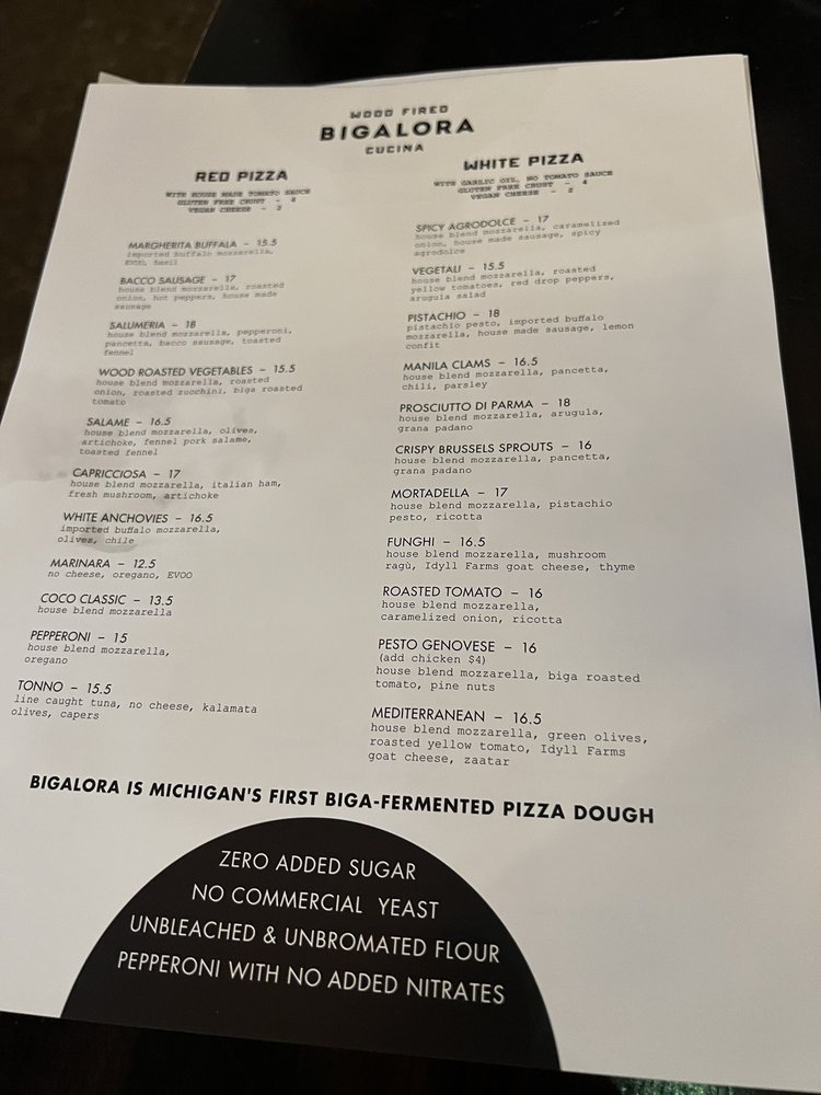 Bigalora Wood Fired Cucina in Royal Oak, MI offers a wide range of options for customers. With delivery, takeout, and reservations available, the restaurant caters to various preferences. The menu features vegan and vegetarian options, making it inclusive for all diners. The casual and trendy atmosphere, along with outdoor seating, creates a pleasant dining experience. Customers rave about the wood-fired pizzas, particularly praising the delicious crust. The pasta dishes and small plates also receive positive reviews. The attentive service, accommodating staff, and timely service contribute to the overall great dining experience. With options for gluten-free individuals and dietary restrictions, Bigalora ensures everyone can enjoy their meal. Visitors appreciate the variety of dishes, from focaccia bread to spaghetti and meatballs. Overall, Bigalora Wood Fired Cucina stands out for its flavorful food, welcoming ambiance, and attentive service.
